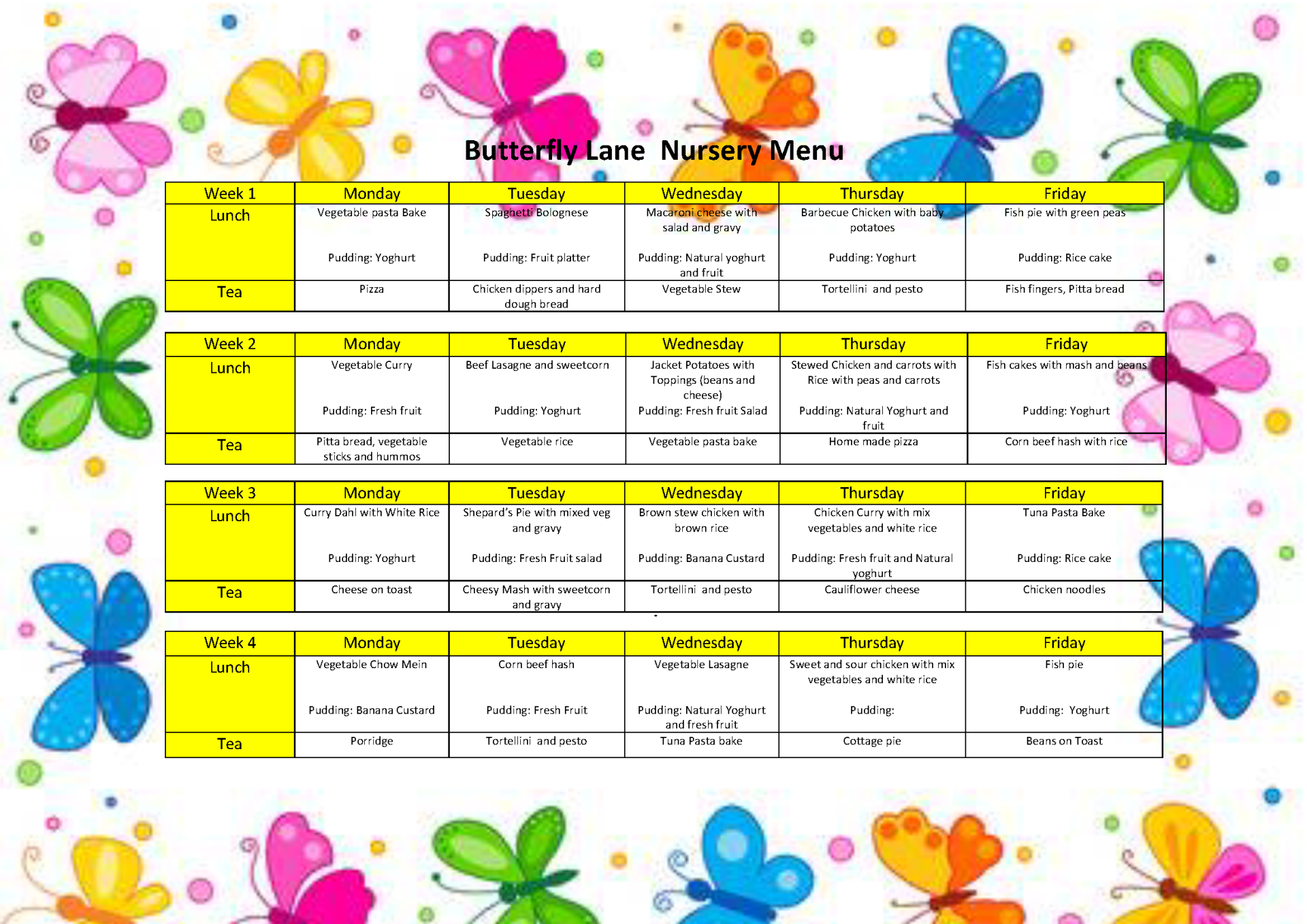 All children’s dietary requirements are recorded and displayed for everyone to see. An alternative meal is prepared for any children with allergies or dietary requirements.